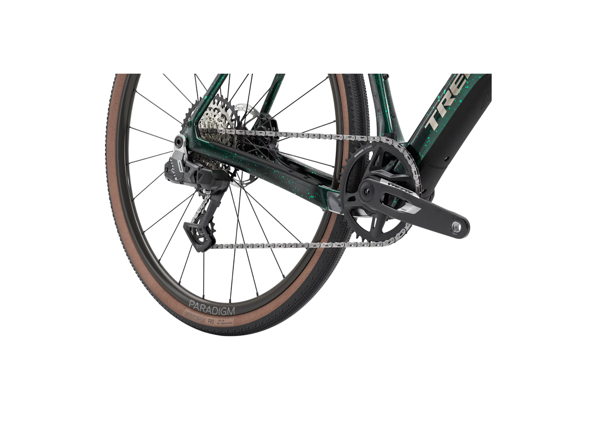 Med trådlös SRAM Rival AXS 13-delad drivlina får du smidig och exakt växling, medan Bontrager Paradigm Comp-hjul och hydrauliska skivbromsar ger pålitlig prestanda. Utrymme för breda däck och gott om fästen gör cykeln redo för äventyr och packning på varierade underlag.