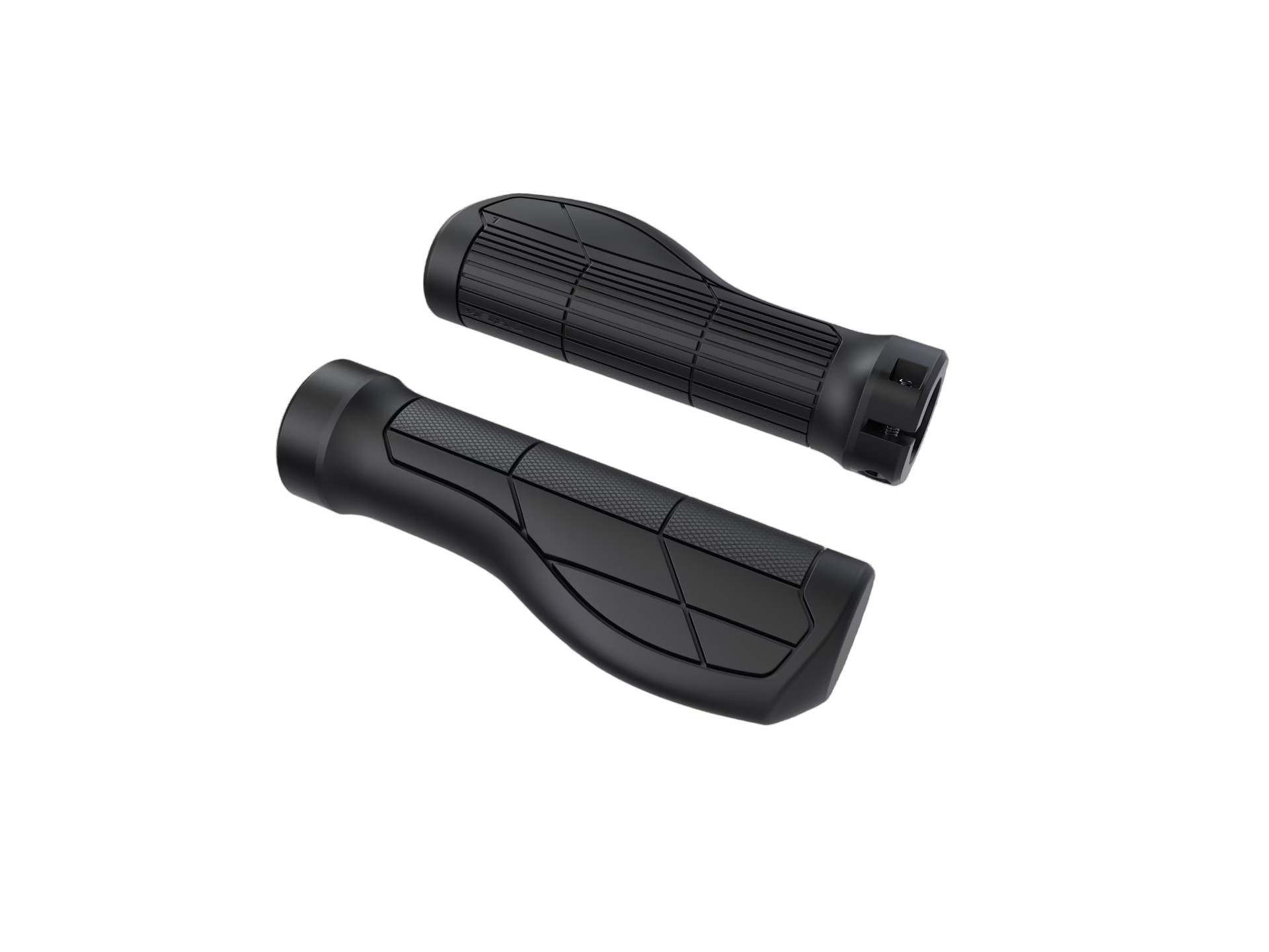 De strategiskt placerade utskärningarna i handtagskärnan gör att stoppningen kan ökas för bättre vibrationsdämpning och minskad trötthet på längre pass. Den enkla Lock-on-infästningen håller handtagen säkert på plats, oavsett om du trampar på asfalt eller grus.